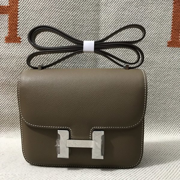 Hermes Constance Bag 18 cm Epsom en cuir gris foncé